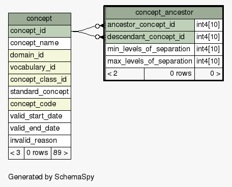 [VOCABULARY] The CONCEPT_ANCESTOR table is designed to simplify observational analysis by providing the complete hierarchical relationships between Concepts. Only direct parent-child relationships between Concepts are stored in the CONCEPT_RELATIONSHIP table. To determine higher level ancestry connections, all individual direct relationships would have to be navigated at analysis time. The CONCEPT_ANCESTOR table includes records for all parent-child relationships, as well as grandparent-grandchild relationships and those of any other level of lineage. Using the CONCEPT_ANCESTOR table allows for querying for all descendants of a hierarchical concept. For example, drug ingredients and drug products are all descendants of a drug class ancestor.