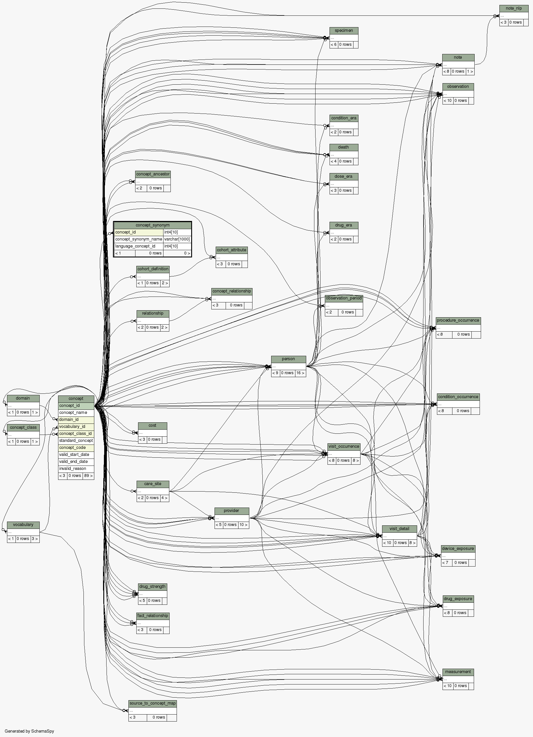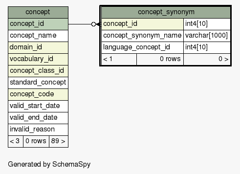 Table postgres.omop.concept_synonym [VOCABULARY] The CONCEPT_SYNONYM table is used to store alternate names and descriptions for Concepts.