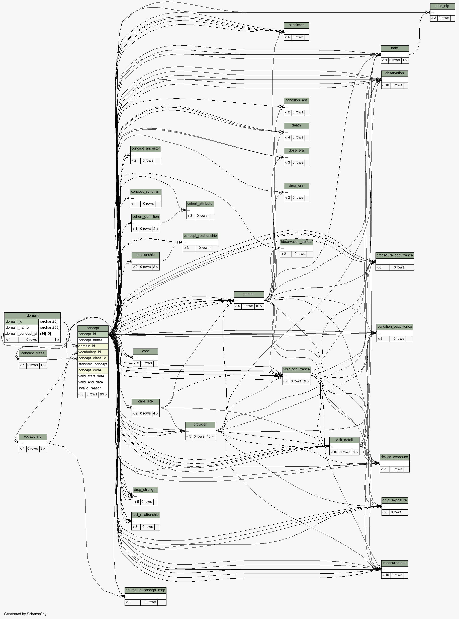[VOCABULARY] The DOMAIN table includes a list of OMOP-defined Domains the Concepts of the Standardized Vocabularies can belong to. A Domain defines the set of allowable Concepts for the standardized fields in the CDM tables. For example, the "Condition" Domain contains Concepts that describe a condition of a patient, and these Concepts can only be stored in the condition_concept_id field of the [CONDITION_OCCURRENCE](https://github.com/OHDSI/CommonDataModel/wiki/CONDITION_OCCURRENCE) and [CONDITION_ERA](https://github.com/OHDSI/CommonDataModel/wiki/CONDITION_ERA) tables. This reference table is populated with a single record for each Domain and includes a descriptive name for the Domain.