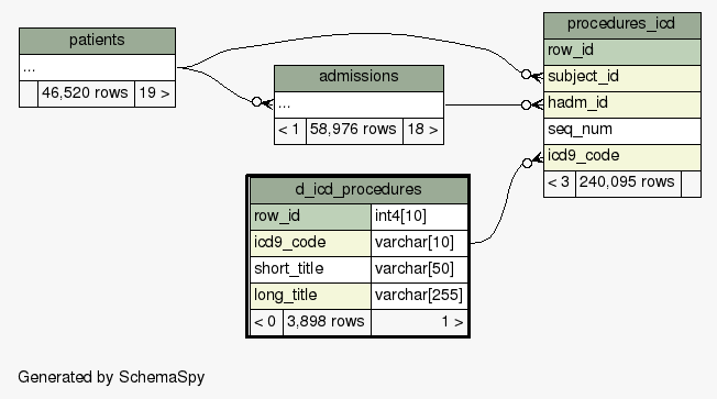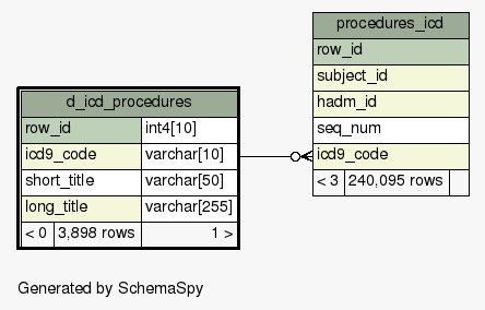 Table mimic.mimiciii.d_icd_procedures Dictionary of the International Classification of Diseases, 9th Revision (Procedures).