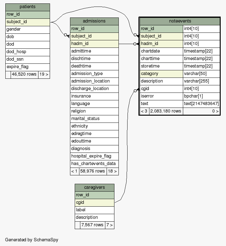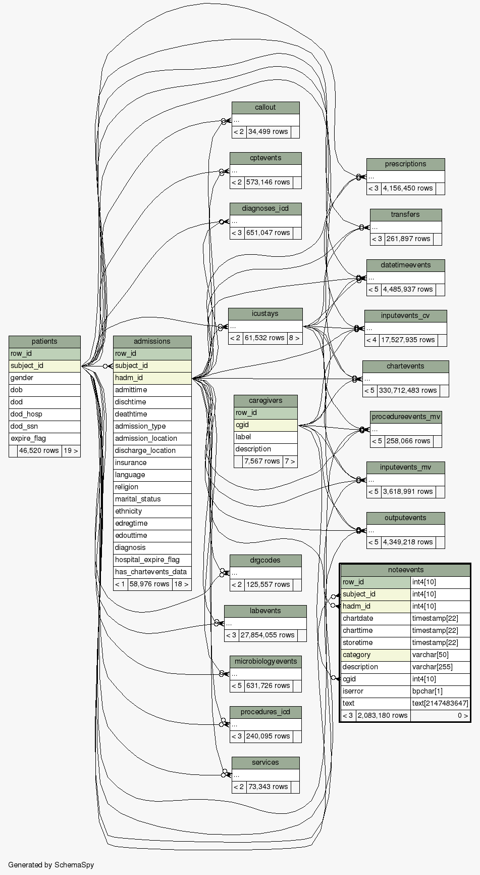 Table mimic.mimiciii.noteevents Notes associated with hospital stays.
