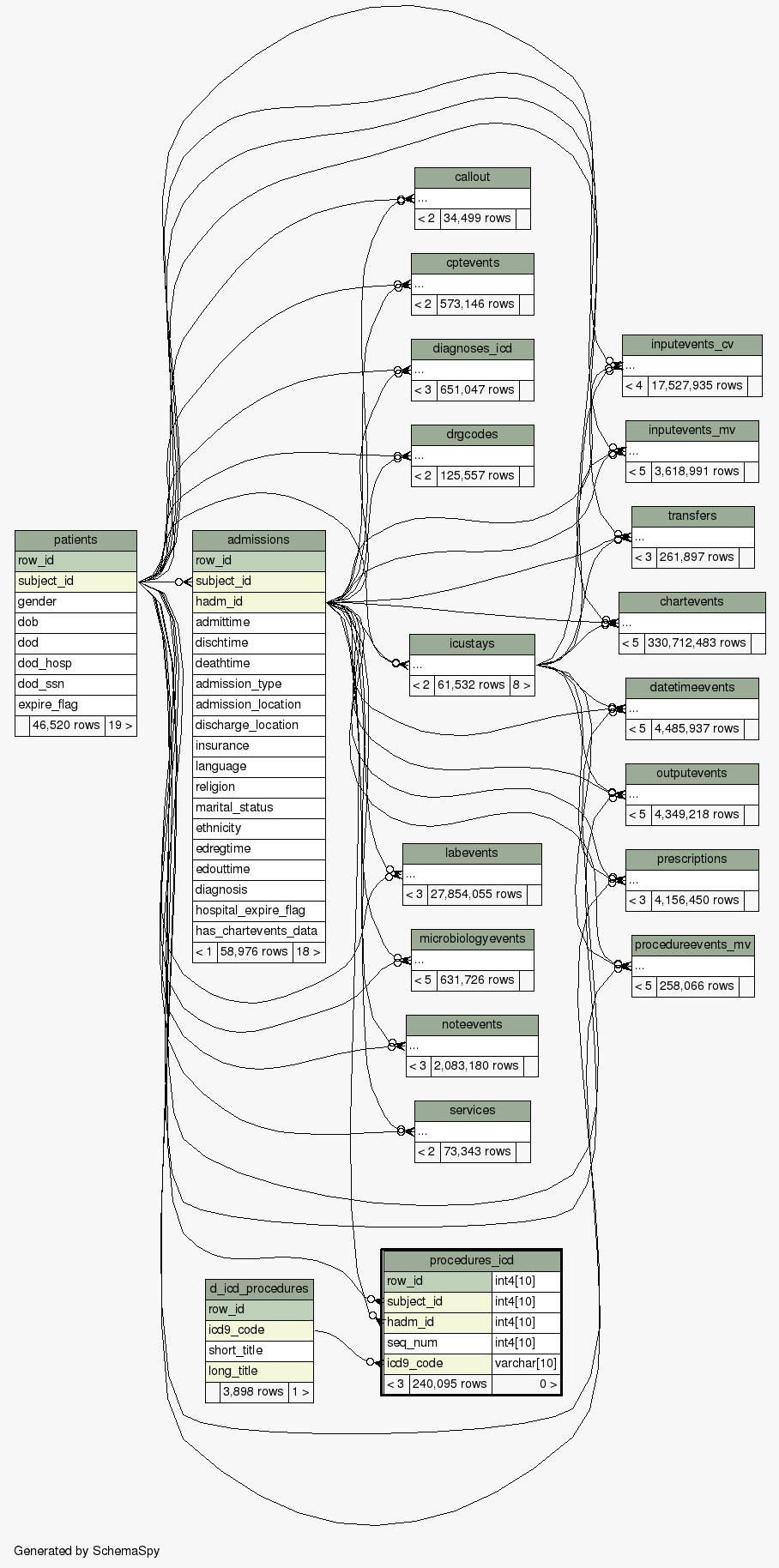 Table mimic.mimiciii.procedures_icd Procedures relating to a hospital admission coded using the ICD9 system.