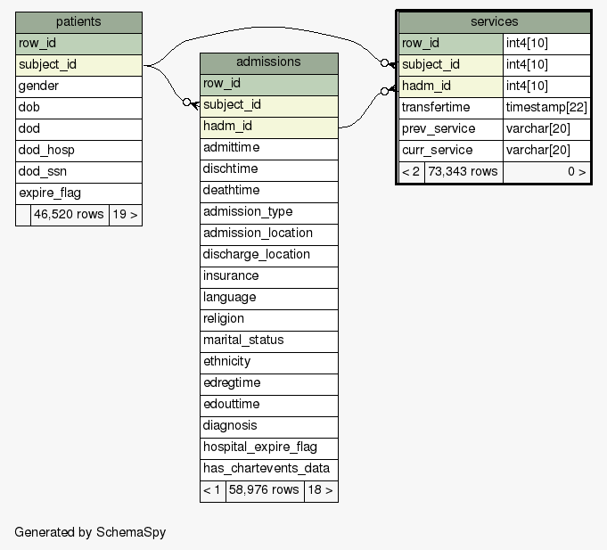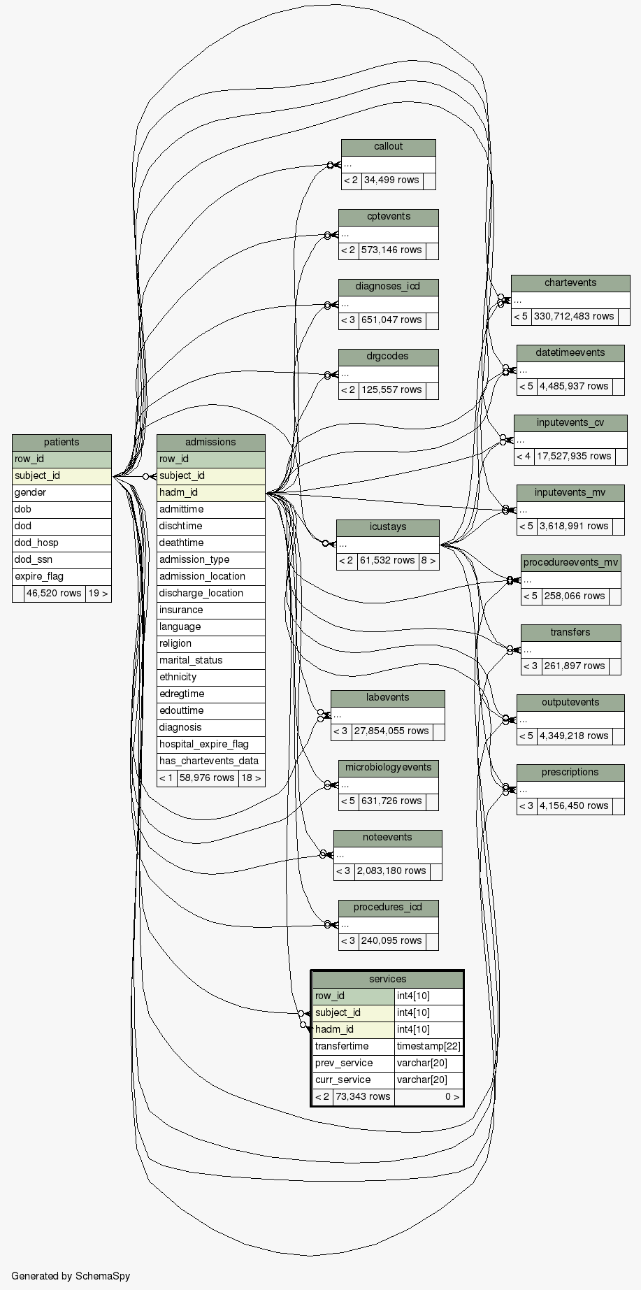 Table mimic.mimiciii.services Hospital services that patients were under during their hospital stay.